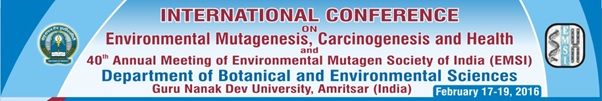 کنفرانس بین المللی موادجهش زای زیست محیطی، کارسینوژن ها و سلامت (ICEMCH2016) همزمان با چهلمین نشست سالیانه انجمن مواد جهش زای زیست محیطی هند (EMSI) در تاریخ 19-17 فوریه 2016 برابر با 30-28 بهمن ماه 94 در دانشگاه گورو نانک دو، شهر امریتسار کشور هند برگزار میگردد.