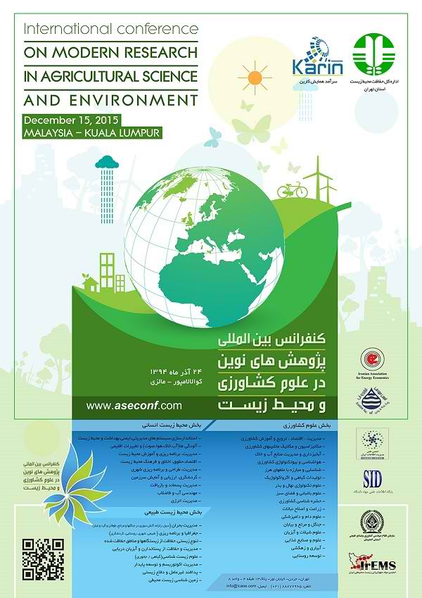 کنفرانس بينالمللي پژوهش های نوین در علوم کشاورزی و محیط زیست با هدف همافزايي دانش و انتشار يافتههاي نو و بديع در زمينه های مختلف کشاورزی و محیط زیست برگزار ميشود. انجمن مواد جهش زای زیست محیطی ایران از حامیان برگزاری این کنفرانس است که توسط موسسه سرآمد همایش کارین در 24 آذر ماه در شهر کوالالامپور مالزی برگزار می گردد. اعضای انجمن جهت حضور در این کنفرانس از 20% تخفیف حضور بهره مند می گردند.